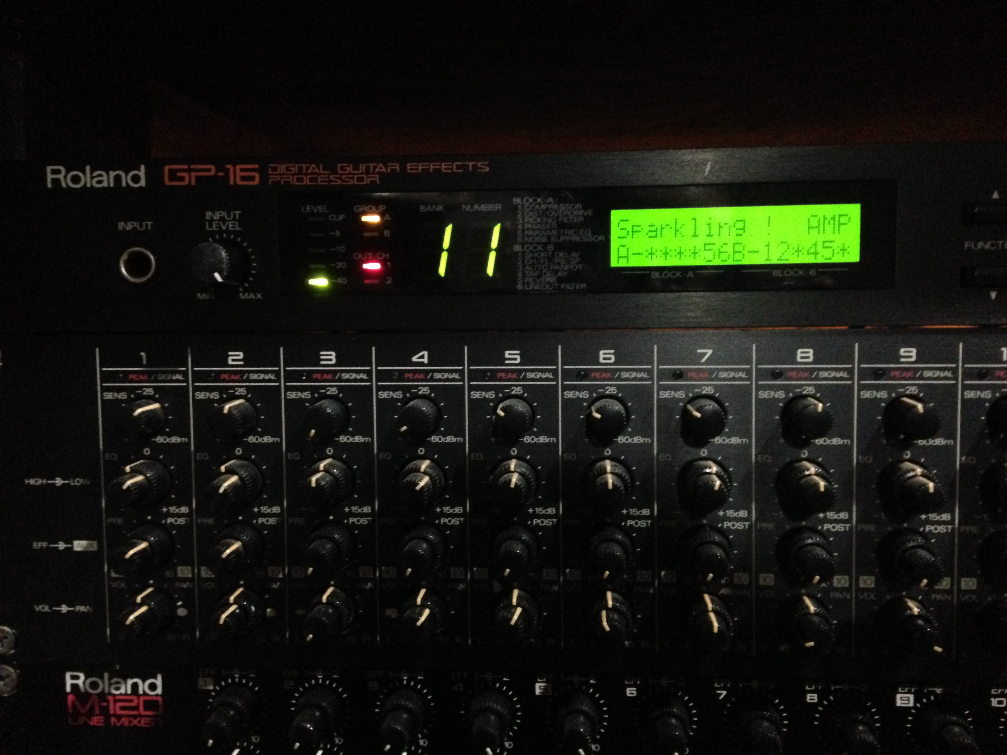 | Status 2018: it is in rack 2 used for effects line for the M-12e mixer. Basically for vocals. |